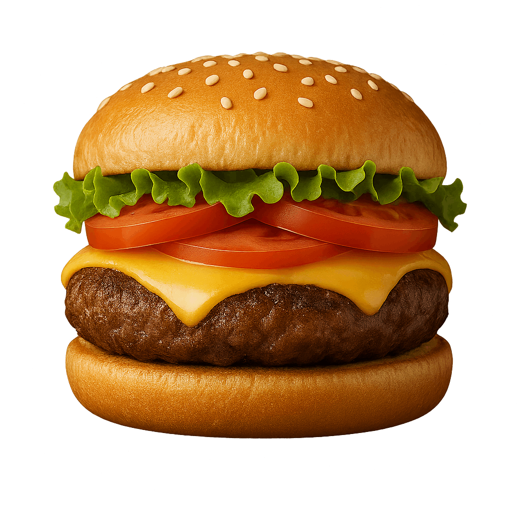 Hamburger fassona 180 gr, formaggio gouda , insalata , bacon , pomodoro , cipolle caramellate